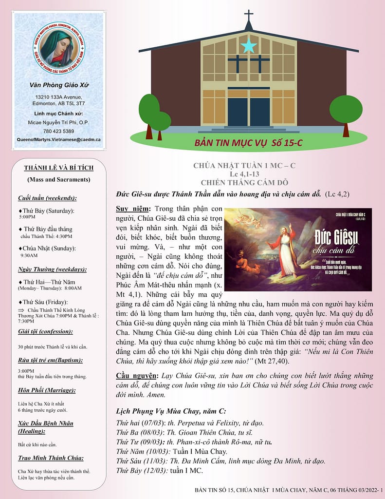 Chúa Nhật 1 MC – Chiến thắng cám dỗ