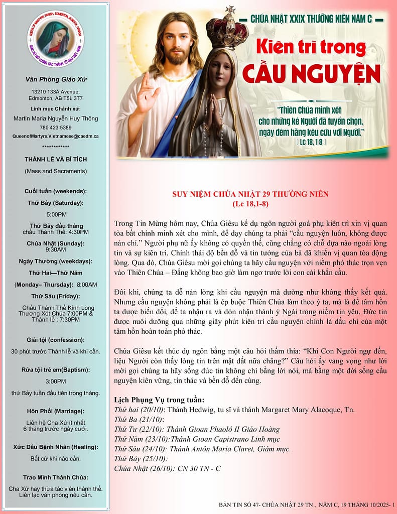Chúa Nhật 29 TN – Kiền Trì Trong Cầu Nguyện