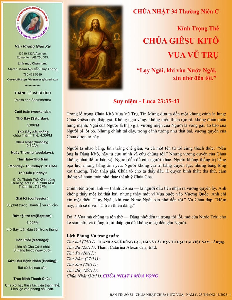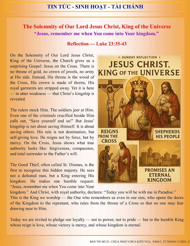 Chúa Nhật 34 TN – Chúa Giêsu Kitô, Vua Vũ Trụ