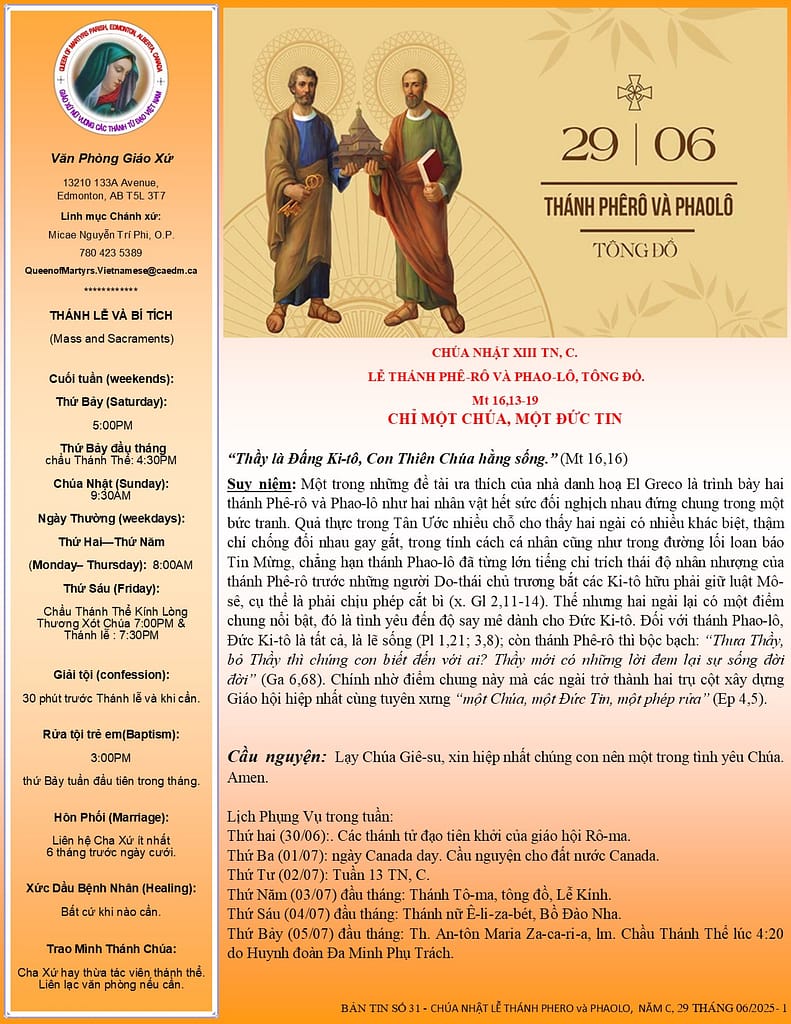 Chúa Nhật XIII TN – Chỉ Một Chúa, Một Đức Tin