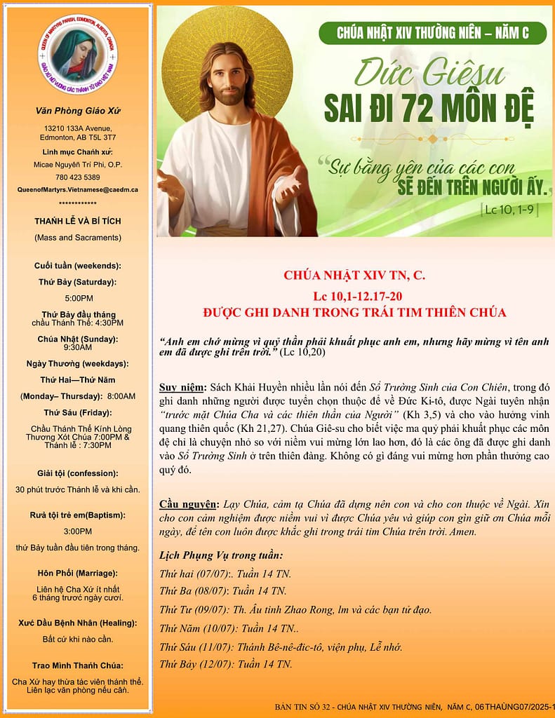 Chúa Nhật XIV TN – Được Ghi Danh Trong Trái Tim Thiên Chúa